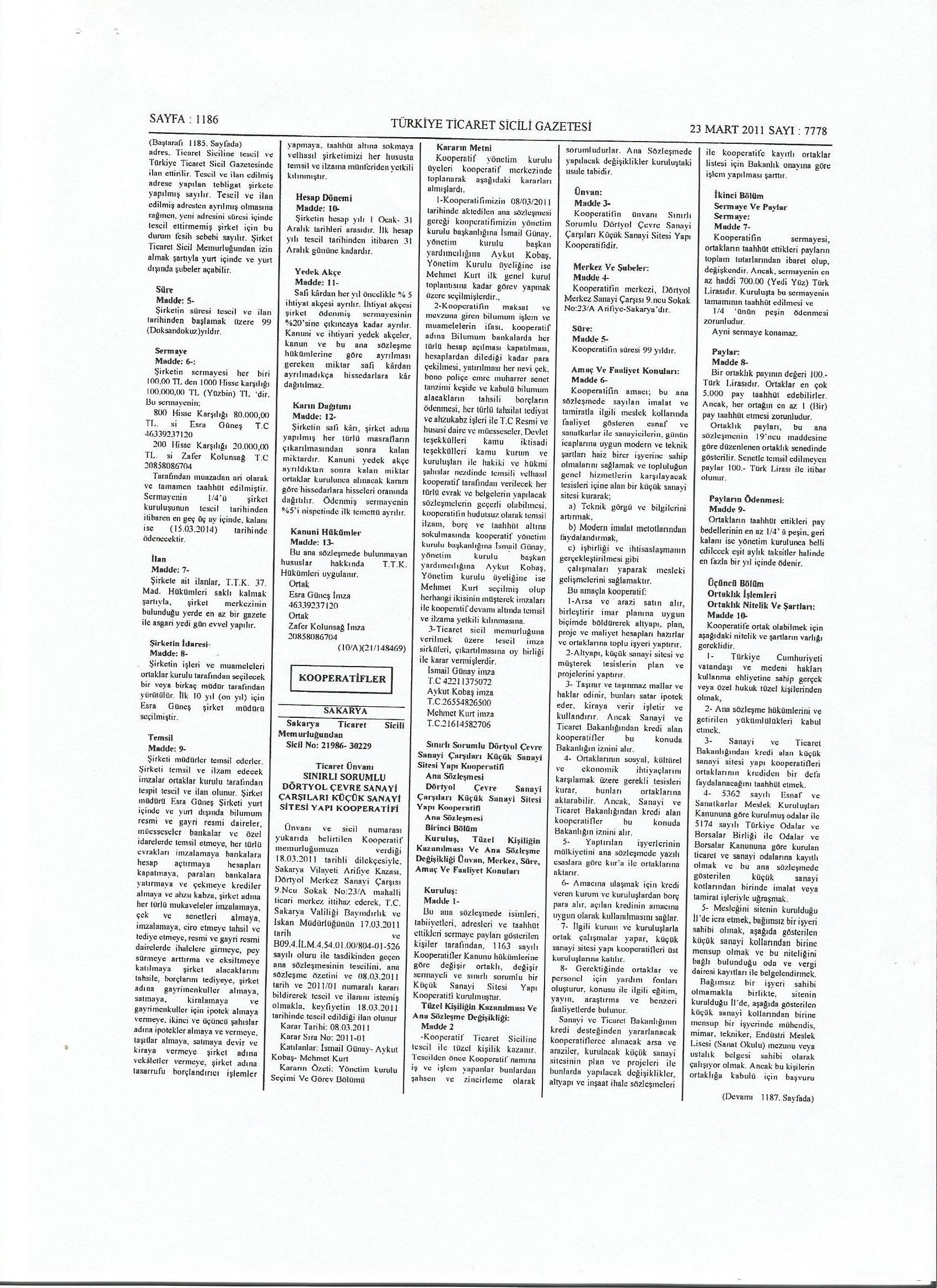 | ORTAKLIK SENEDİ | 25-11-2019 |